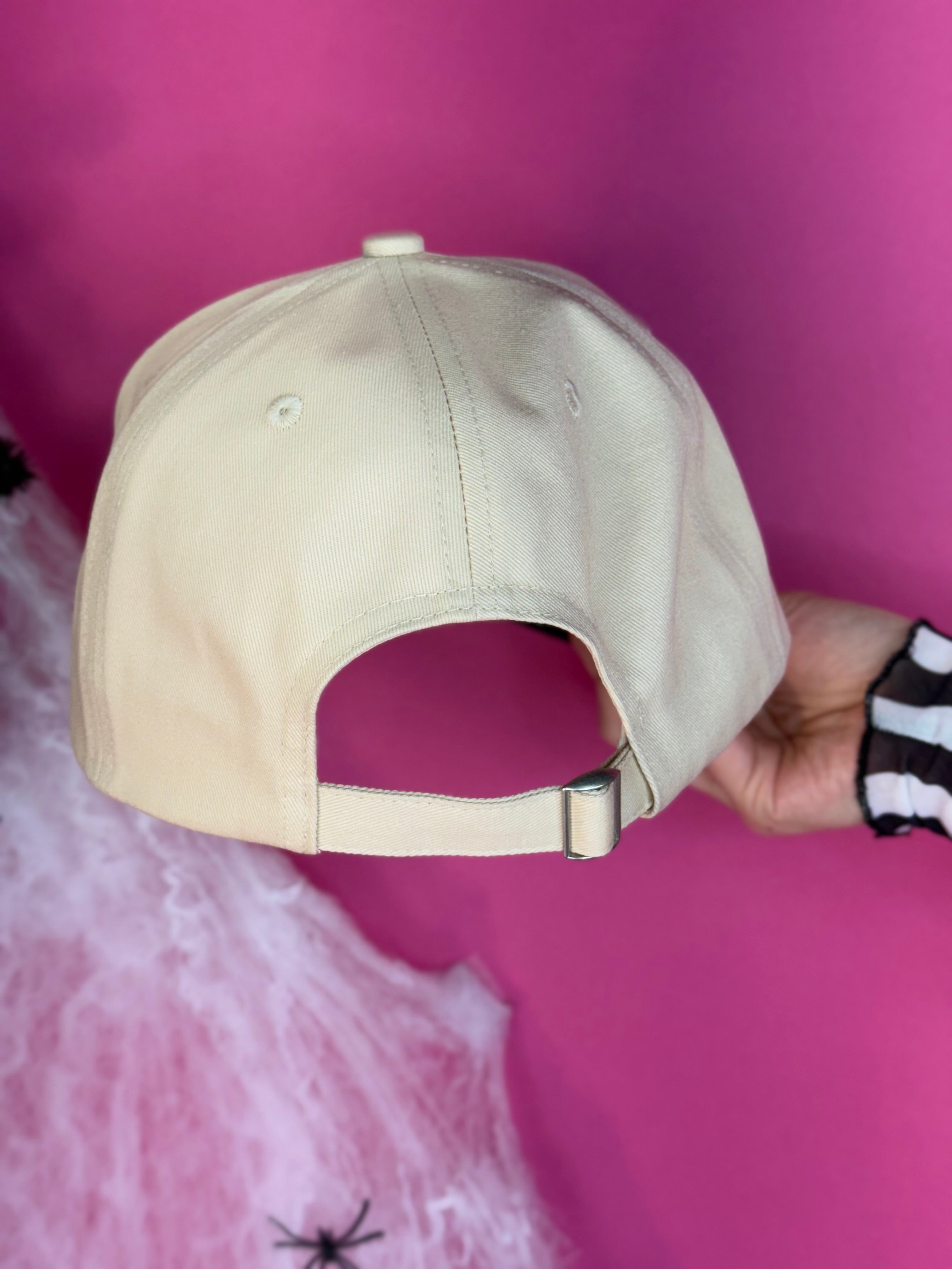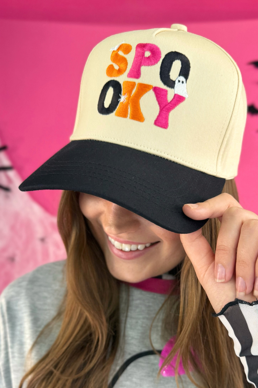 Get into the Halloween spirit with the Spooky Vibes Hat! Featuring a cream canvas crown, black canvas bill, and fun spooky embroidery, this cap brings adorable Halloween charm to your look.