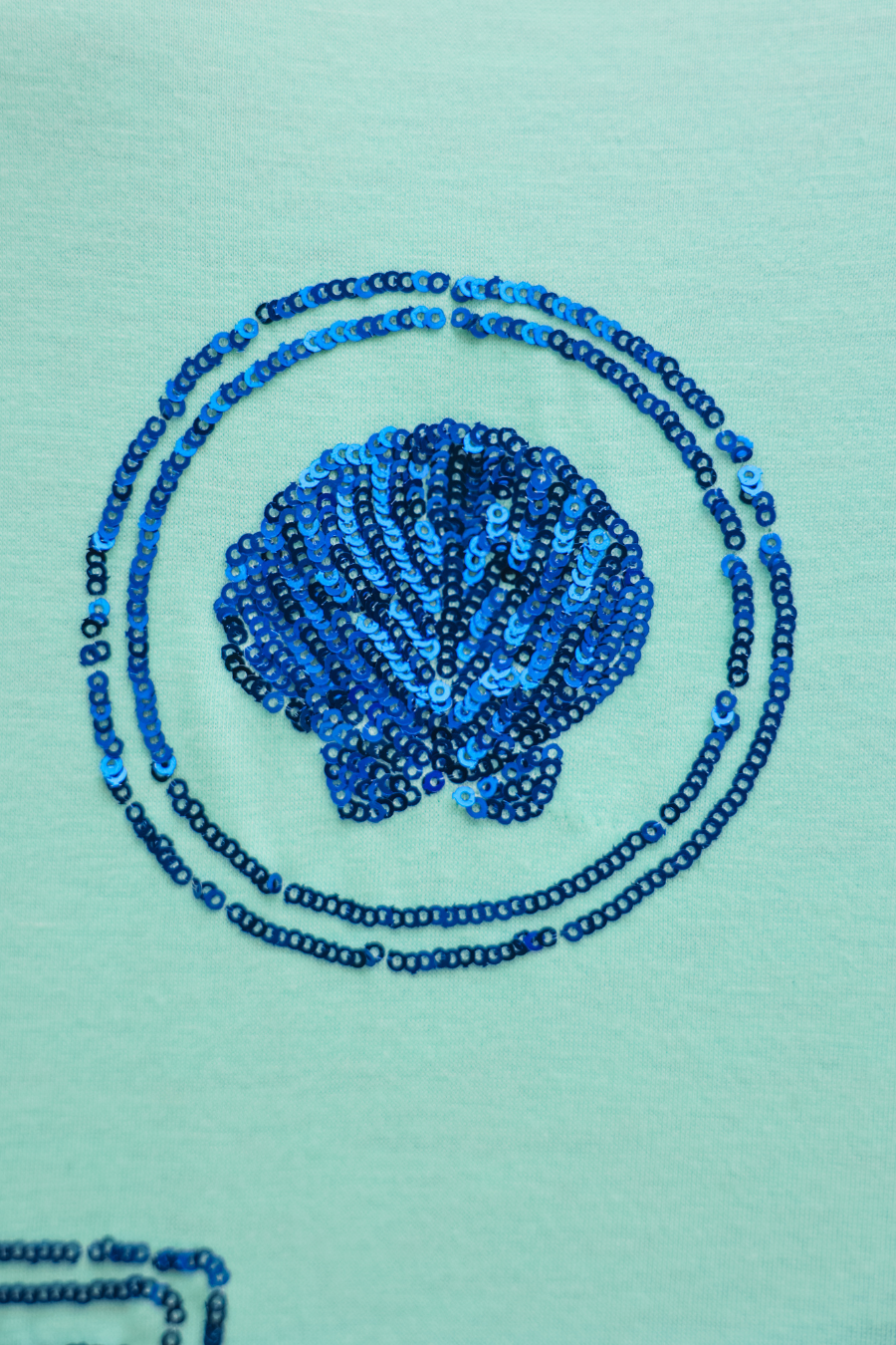 Add a splash of playful style to your wardrobe with our By The Sea Sequin Patch Top. This coastal inspired and eye-catching piece is perfect for those who love to stand out while embracing a fun, vacation vibes. Ideal for casual outings, parties, or a sunny day out, this top is sure to make a statement.