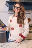 This Apple Orchard Sequin Sweatshirt is perfect for fall or for teachers! Its playful sequin apple patches add a touch of fun, while its soft and lightweight material ensures comfort. Stay stylish and cozy with this must-have sweatshirt.
