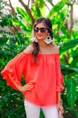 This gorgeous top is a perfect piece for your closet! You are sure to fall in love with this beauty! This top features off the shoulder style & a flowy style. You can throw on the adorable top with a pair of jeans or shorts and you're to go!